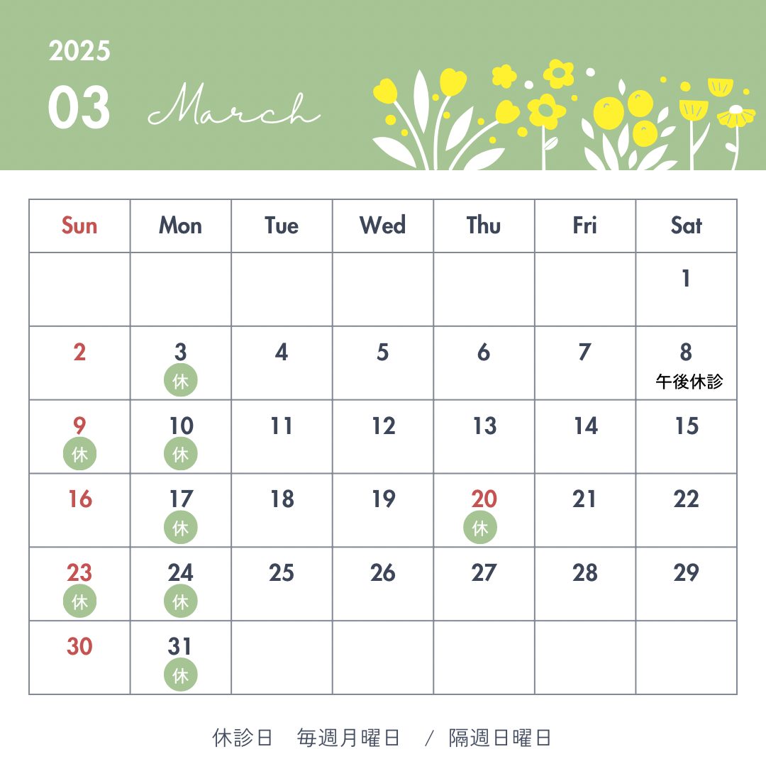 3月の休診日はこちらです⇩⇩
